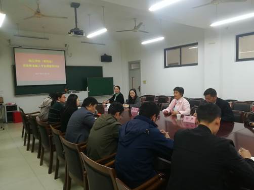 2017年11月1日下午,临江学院(第四组)思政融入专业课堂研讨会在6240会议室召开。人文社科部院长张崇生、临江学院院长谢萍华、党总支副书记胡严、副院长何艺、思政融入课堂工作第四组所有成员和两名思政指导教师,以及专业负责人、教科办、学工办负责人参加了此次会议,会议由何艺主持。