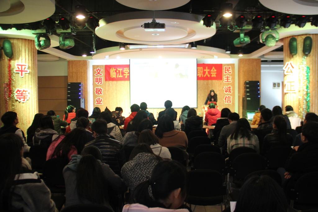 12月24日下午,临江学院在学生活动中心108多功能厅举行2014/2015学年第一学期“践行核心价值观,放飞青春中国梦”主题团日活动评比暨团支书述职大会。