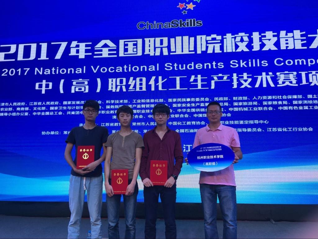 6月2日至5日,2017年全国职业院校技能大赛高职组化工生产技术赛项在常州工程职业技术学院举行,共有来自全国43支高职组代表队129名选手参加了本赛项的角逐。我校临江学院精细专业学生陈武杰、何春锋、贵成林三位同学组成的代表队经过4天激烈拼杀最终荣获团体三等奖,何春锋同学被授予化工总控工(高级)职业资格。