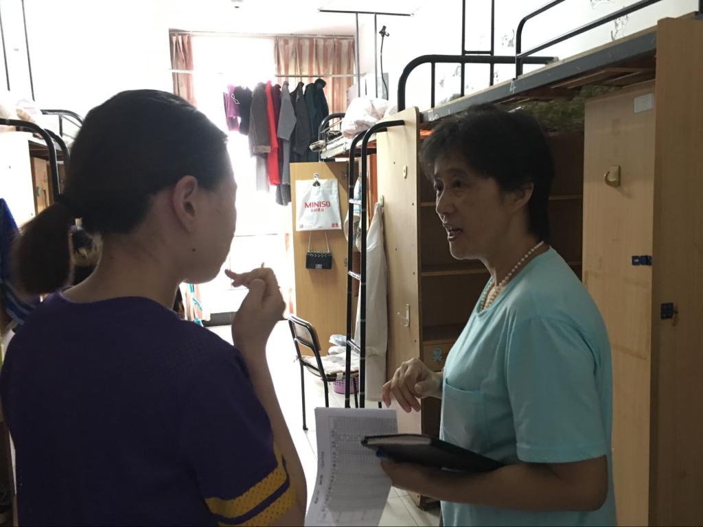 会议结束后,全体党员教师分组走访了各自联系的寝室。谢萍华院长查看了寝室的卫生状况与生活设施,指导学生按照文明寝室标准,保持寝室干净整洁,消除安全隐患,将文明寝室创建与学生文明修身教育、文化校园建设紧密结合。党员教师与学生们谈心谈话,了解了学生的生活情况和实际需求,并为学生答疑解惑。学生们积极与老师交流,感谢老师们的关心,并表示对于老师们指出的问题会努力整改,保持良好的精神风貌,营造和谐的寝室文化。