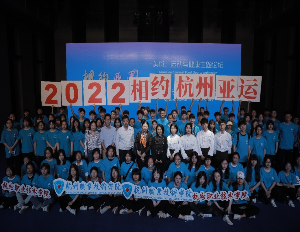 我校食品专业100名师生在胡严、王晓磊、丁文等老师的带领下参加了此次论坛节目,食品专业负责人支明玉介绍了参展作品“醇美亚运,悦动杭城”的设计理念和制作工艺,并在现场和学生互动。最后,学生高喊“融惟职道、善举业德”的校训口号,将节目推向高潮。