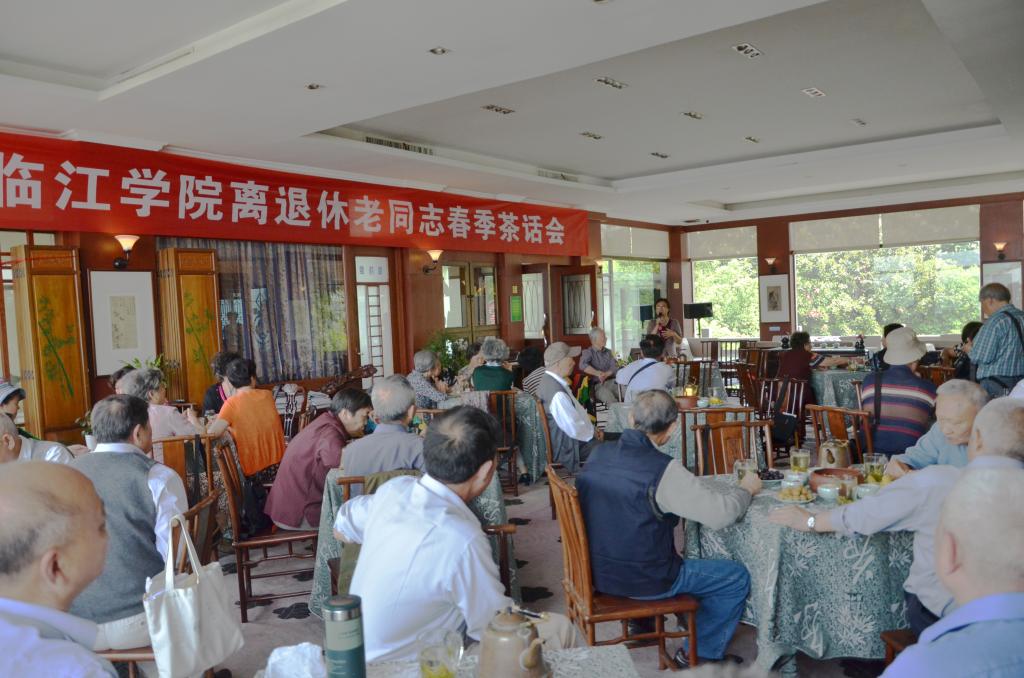 ,杭州的西子湖畔柳绿花红,春意盎然。临江学院40多位离退休老同志在杭州湖畔居茶楼欢聚一堂,开展春季茶话会。临江学院院长谢萍华出席会议并讲话,离退休同志、校人事处退管办吴肖妮、后勤医务室宋明珠和临江分工会荣先林参加会议。会议由分工会主席荣先林主持。