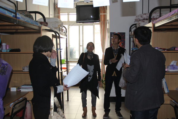 为了加强学校精神文明建设,进一步创造和谐、干净、整洁的寝室生活环境,培养同学们的团结、协作精神,临江学院举办了“秀出寝室,秀出自我”寝室文明评比大赛。11月18日下午,学工办主任俞坚、团总支副书记杨乐克、辅导员许智颖、金晶、王晓磊共同参与此次评比活动。