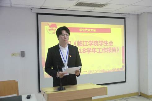 6月24日下午,临江学院第九次学生代表大会暨学生会换届大会在学生活动中心226室成功举行。临江学院团总支负责人丁文、学生会各部门部长、三十四位参与竞选的干事以及各班级代表出席本次大会。