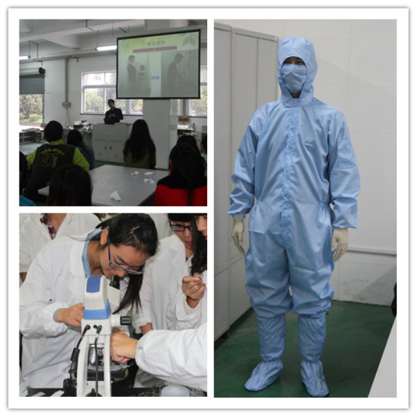 为让师生更深入了解和掌握生物制药企业药品生产关键技术环节和生产管理要求,11月2日,临江学院邀请了华东医药发酵职业技能带头人、杭州市首席技师章飞龙,华东医药微生物制药技术骨干黄建平、李娜、王苗苗等几位技术人员为生物制药技术专业12级学生进行了无菌更衣操作和微生物镜检涂片两项技能的专题讲座和指导。临江学院副院长何艺、专业负责人陈郁及相关专业教师参与这次培训。