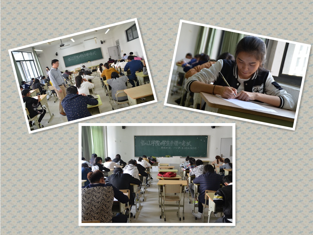 这是大一新生来到大学后的第一场考试,此次考试有效地促进了临江学院2014级新生对校纪校规知识的学习和了解。希望这次的《学生手册》的考试能给每一位新生留下深刻记忆,并为今后三年的的学习生涯规划打下良好基础。