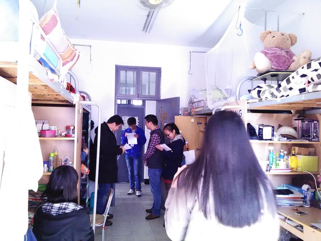 整洁是美化的前提,此次寝室美化大赛也是根据清洁、美化、创新三个方面进行综合评分。在学工办主任荣先林老师和辅导员金晶老师的带领下,几位学生会成员作为评委一起完成了评比工作。为冲刺此次寝室美化大赛的决赛,几乎每一个寝室都进行了精心布局,风格多样、精彩纷呈。女生寝室,幽香洁静。男生寝室,简洁可爱。风格各异的的寝室设计充分展示了我们临江学子的多才多艺,如此简单朴素的寝室都能在我们手中绽放光彩