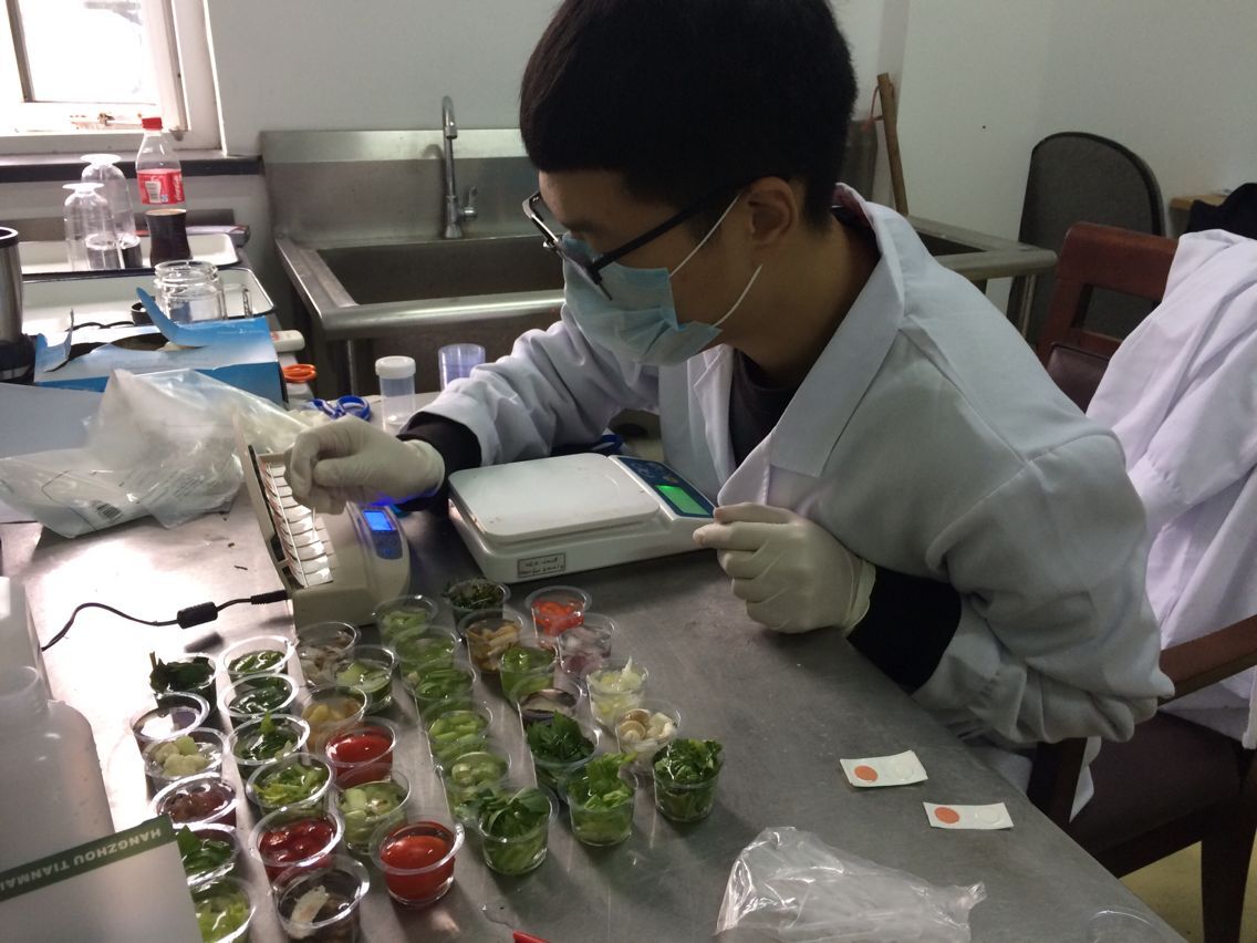 此次互联网大会学生负责的食品安保工作主要是招待酒店的厨房原材料食品安全快速检测,包括农药残留、抗生素残留、生物毒素残留等项目。志愿者需要每天早上4点开始工作,工作内容包括食物抽样、开机预热、样品前处理、检测等。虽然食品安保工作辛苦,可同学们说:“能参加这样规模的活动很幸运!能用自己的专业一技之长服务社会更自豪!”