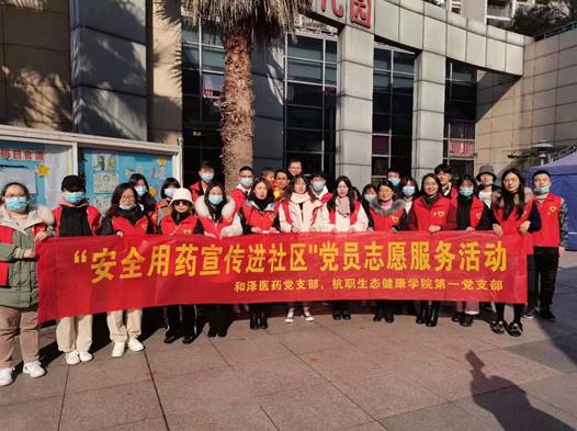 为更好发挥结对校企双方的优势,实现党建活动共联,近日304永利第一党支部与党建结对企业和泽医药科技有限公司党支部在钱塘新区白杨街道共同组织开展了“安全用药宣传进社区”志愿服务活动。