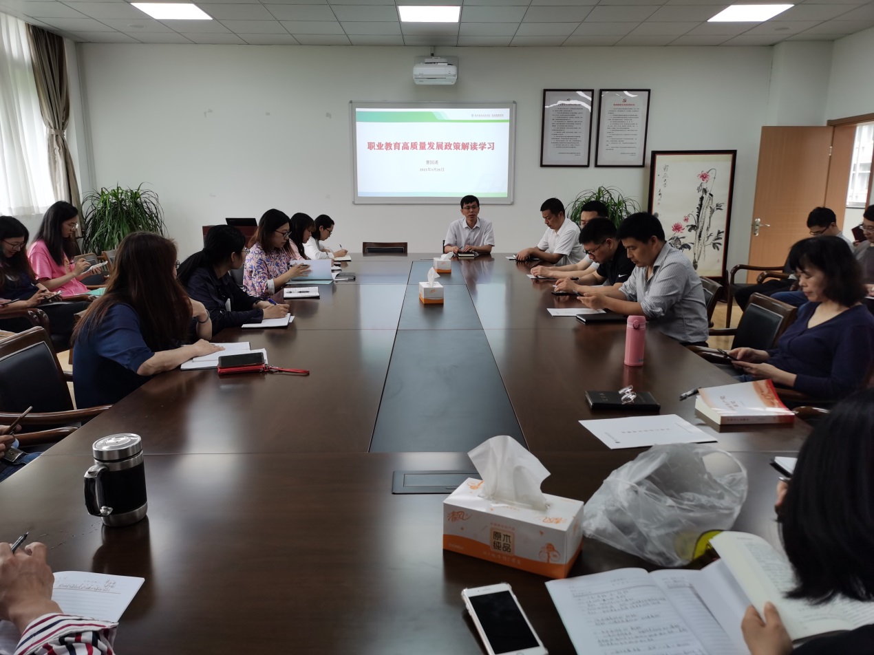 5月26日下午,304永利在分院西2203会议室召开全体教职工大会,解读学习职业教育高质量发展政策与思考。会议由304永利院长、党总支书记童国通主持。304永利班子成员及全体教职工参加了会议。