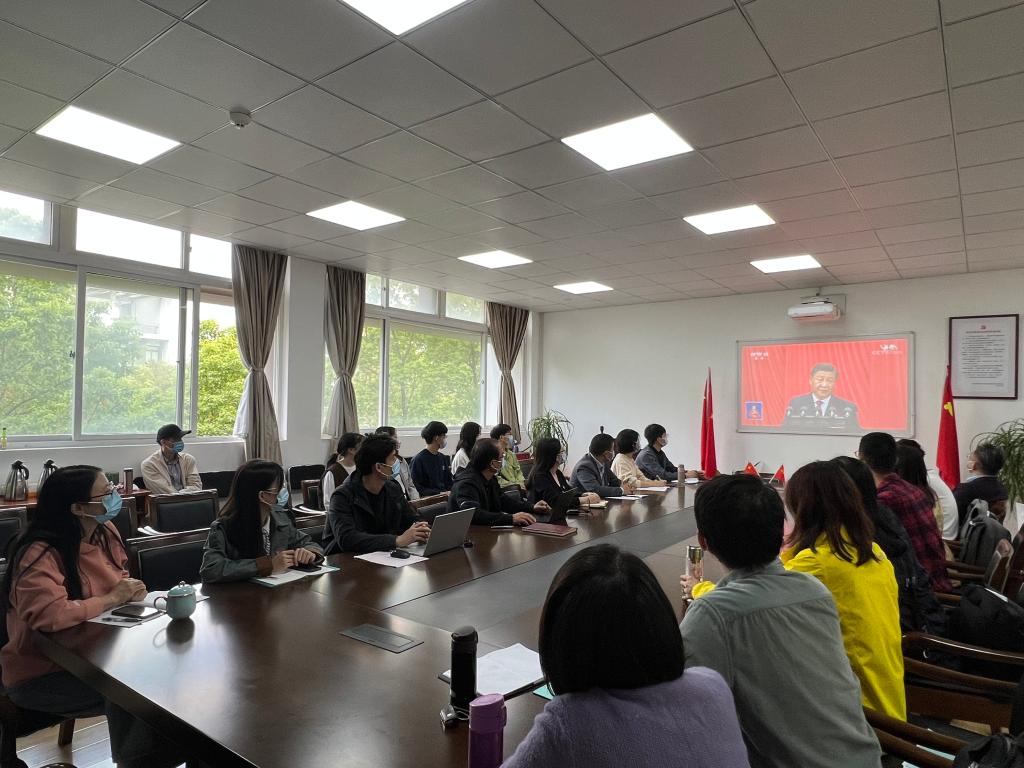 10月16日一早,304永利班子成员、全体中层、各支部委员及学生代表就已集聚在西2203会议室,准备收看中国共产党第二十次全国代表大会开幕会。