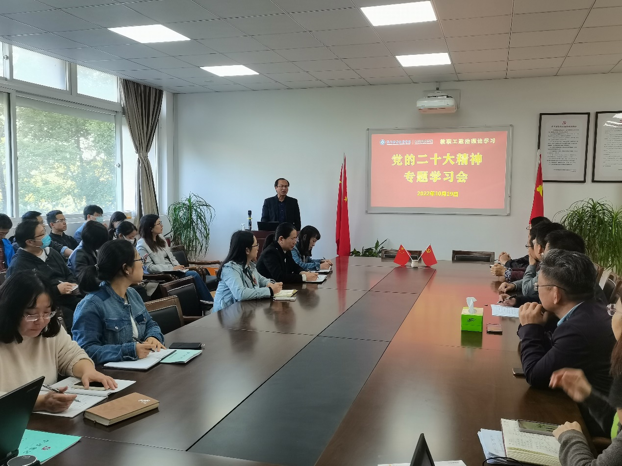 19日下午,分院开展全体教职工二十大精神专题学习会,张崇生以“数说二十大报告”为线索,对党的二十大的重要历史地位和二十大报告的主题、结构、主要内容、新观点、新论断、新思想等进行了较为深入的解读。