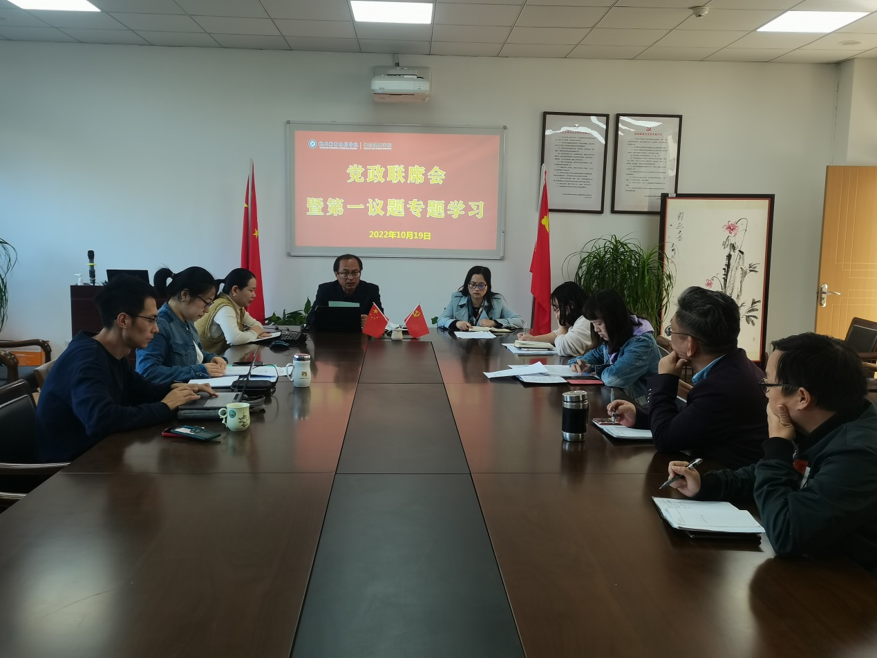 10月19日上午,304永利召开党总支委员会、党政联席会,第一议题专题学习党的二十大精神,重点学习习近平总书记所作报告精神。党总支书记张崇生领学了报告精神,就初步学习的心得与大家进行交流,并对深入学习贯彻报告精神、大会精神作出部署。