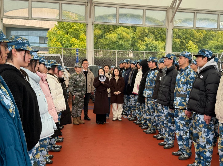 训练场上,何院长仔细了解了23级学生分列式训练的开展情况,对承训教官们这段时间的辛勤付出表示衷心的感谢,对我院学生在寒冬中不惧艰苦、刻苦训练的精神给予充分肯定,叮嘱同学们注意保暖,遇到困难及时向教官和辅导员反映,学院全力为大家提供保障。