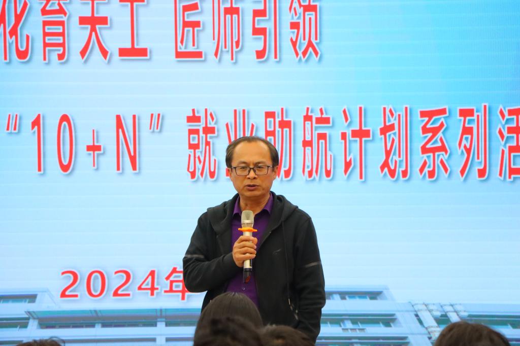 党总支书记张崇生简要分析了今年的就业形势,建议同学们从现在开始,结合社会环境和个人实际,明确发展目标,拟定发展规划并付诸行动,不断提升综合素能,为个人职业生涯发展奠定坚实基础,并宣布304永利“化育天工 匠师引领”就业助航计划系列活动启动。