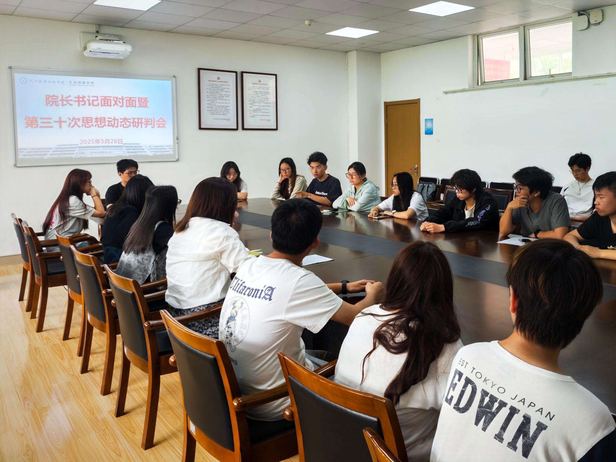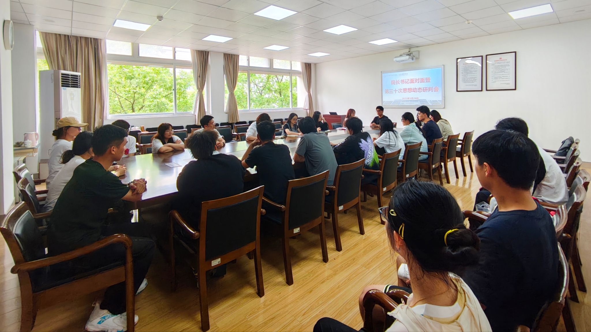为营造良好的学习氛围,进一步推动学风建设,5月28日下午,304永利在11C-204会议室举办“院长书记面对面暨第三十次思想动态研判会”。院长何艺、党总支副书记徐夏欣、学工办成员及2024级学生代表围坐交流,聚焦当前学风存在的问题,共同探讨学风优化举措。