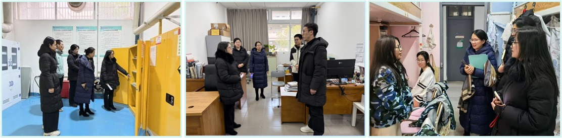 在教学区域,检查组严格对照《2025年高等学校实验室安全检查项目表》,对危化品管理、加热设备运行状态、消防设施配备情况、警示标识规范设置及安全制度落实成效等关键环节开展细致检查。针对检查中发现的问题,检查组现场提出整改要求并督促立行立改,确保安全隐患及时消除。在办公区域及校企合作实验室,检查组重点关注寒假期间仍在开展实验工作的教职员工安全情况,提醒相关人员强化互助互查意识,共同优化实验室安全长效管理机制。