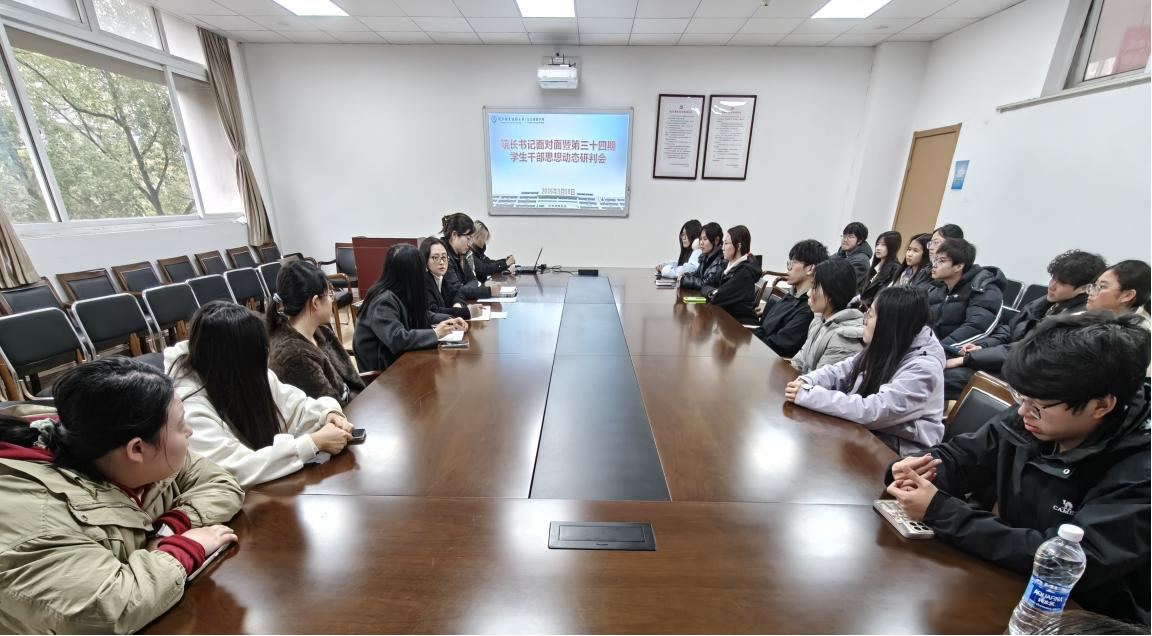 会议聚焦“学生干部如何更好发挥模范带头作用”核心主题,围绕思想引领、学业示范、服务同学等关键方面深入交流。学生干部代表结合履职实际,分享心得、反思不足,就带动同学笃学向善、提升服务质效等提出建议。参会老师耐心倾听,解答履职困惑,引导学生干部明确定位、牢记使命,在思想、学习、行动上作表率。徐夏欣肯定了学生干部的履职担当,鼓励大家带头筑牢思想根基、勤学善思、服务同学,凝聚成长合力。