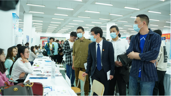 为全面促进304永利就业工作,拓宽毕业生就业渠道,搭建用人单位和毕业生双向选择的供需平台,实现毕业生高质量就业和精准就业,在党委学工部指导下,2021年4月28日下午,304永利2021届、2022届毕业生专场招聘会在校体育馆顺利召开。杭州市钱塘区社会发展局就业和人才市场管理科周磊科长、杭州医药港管理办公室黄斌主任、学工部部长江平、学工部副部长杨乐克莅临指导了本次招聘会。