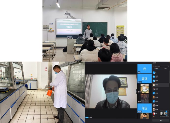 12月17日,学工办召开班主任、班长会议,要求全体学生进一步认清疫情防控的严峻形势,班主任应及时关注班级学生的动态情况,严格审批学生离校请假,非必要不出校,重申学生钉钉请假的流程,并要求摸排清学生请假期间的行动轨迹,要求请假出市、出省学生回校前做48小时内的核酸检测,将检测报告作为附件并进行销假。12月20日,各班举行钉钉班会,传达了分院关于学生防疫防控的要求, 并要求学生每日按要求、按时登记回寝情况,全体学生严格用手机端按规则进行每日健康打卡,进出学校戴好口罩。