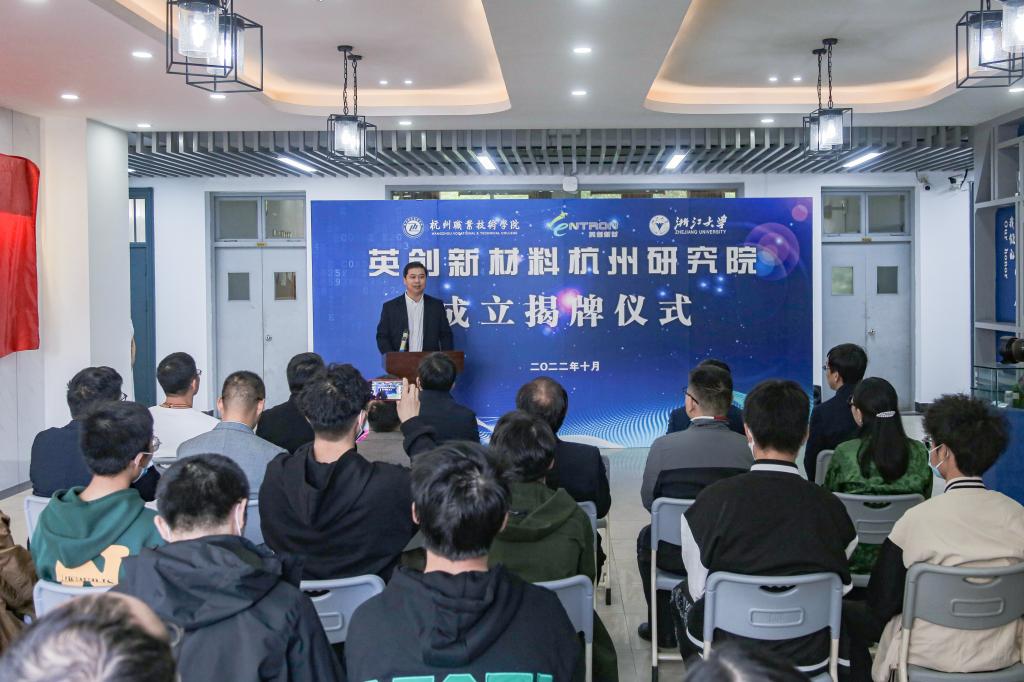 10月29日,由杭州职业技术学院、浙江大学化学工程联合国家重点实验室和英创新材料(绍兴)有限公司三方共建的英创新材料杭州研究院成立揭牌仪式在304永利二楼大厅隆重举行。浙江大学化学工程与生物工程学院聚合与聚合物工程研究所所长罗英武教授、英创新材料(绍兴)有限公司总经理吴荣生、学校副校长程利群、党委委员麻朝晖、教务处、科研处、304永利相关负责人,以及精细化工技术专业师生代表、研究院骨干团队等30余人参加揭牌仪式。304永利院长何艺主持成立揭牌仪式。