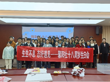为庆祝馨阳社成立十八周年,进一步凝聚社团力量,传递温暖与关爱,让每一位成员都能感受到“家”的温暖。12月4日,304永利馨阳社举办了十八周年的生日会。学工办主任孙菲、馨阳社指导老师程钰峰和众多社员共同参与,活动由社长商兢月主持。