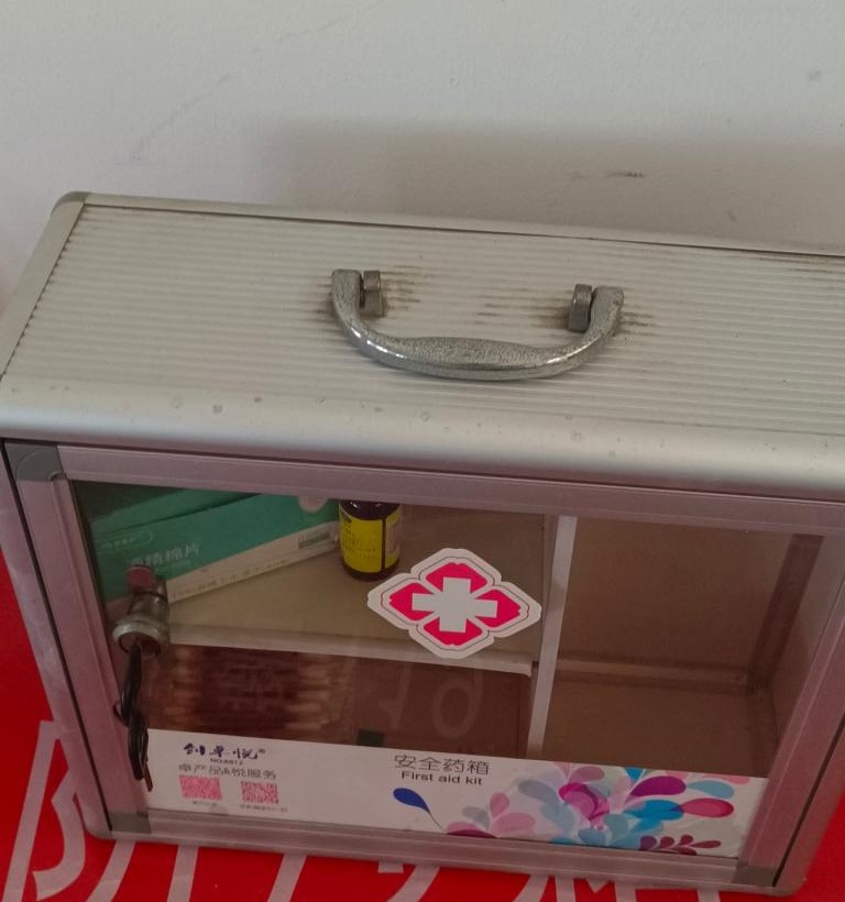 2、场所安全方面,缺医药箱或药箱残缺(B506、B302、B205、B204、B402、A503、A314、A114),药箱中药品过期或需补充(A409、A504、A215),实验材料过期(A504酸菜、A503试剂盒),物品摆放杂乱或门口物品堆积影响逃生(B510、B204、A503)。